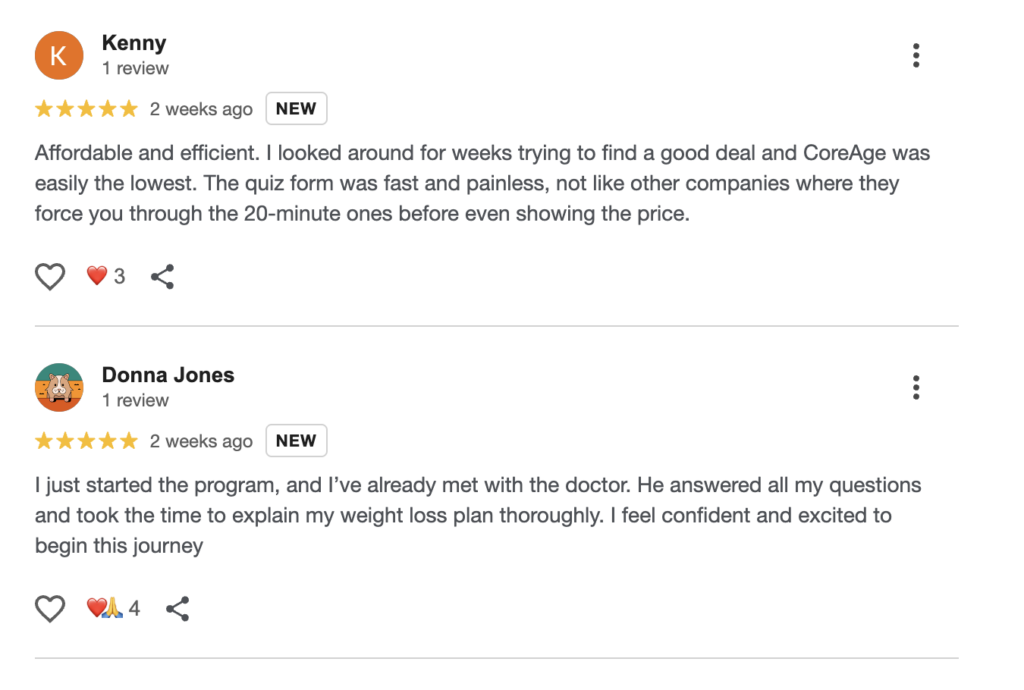All in all, whether you’re exploring GLP-1 options or simply evaluating telemedicine platforms, CoreAge Rx presents an impressive blend of expert oversight, affordability, and clarity—a weight-loss solution grounded in science and designed for your life.